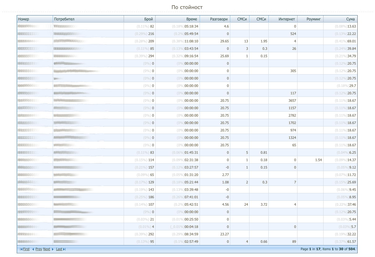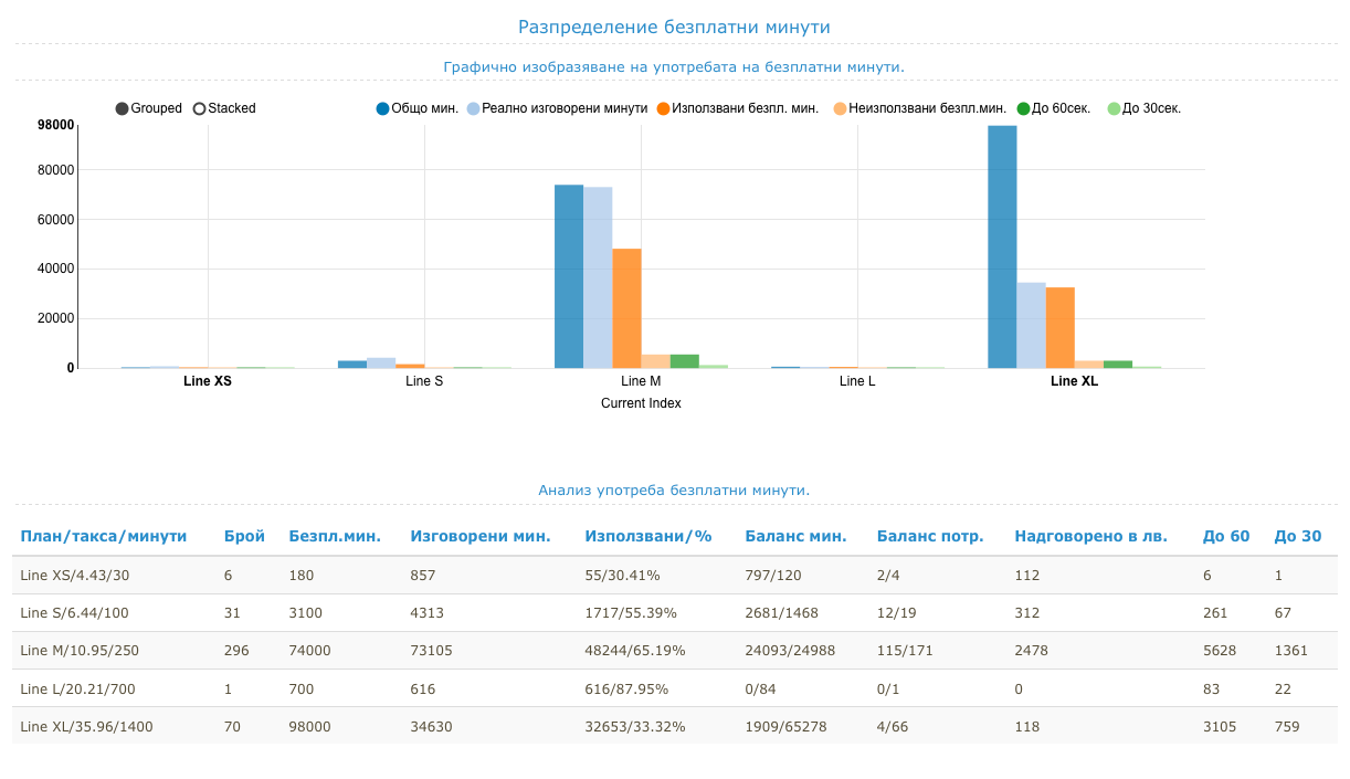 "Phobian" предоставя изключителна възможност за анализ на употребата на безплатни минути както за физически лица така и за юридически с голям брой потребители.