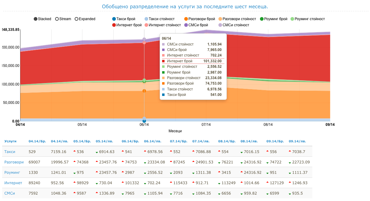 Тук "Phobian" разглежда под различен разрез потреблението на услуги по различни видове.